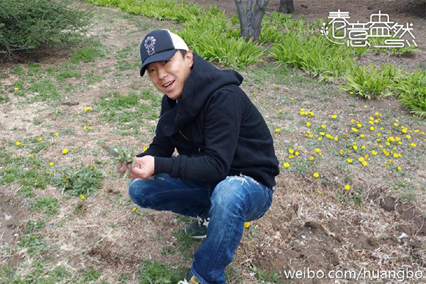 黄渤微博照:上山采野菜,好吃又健康