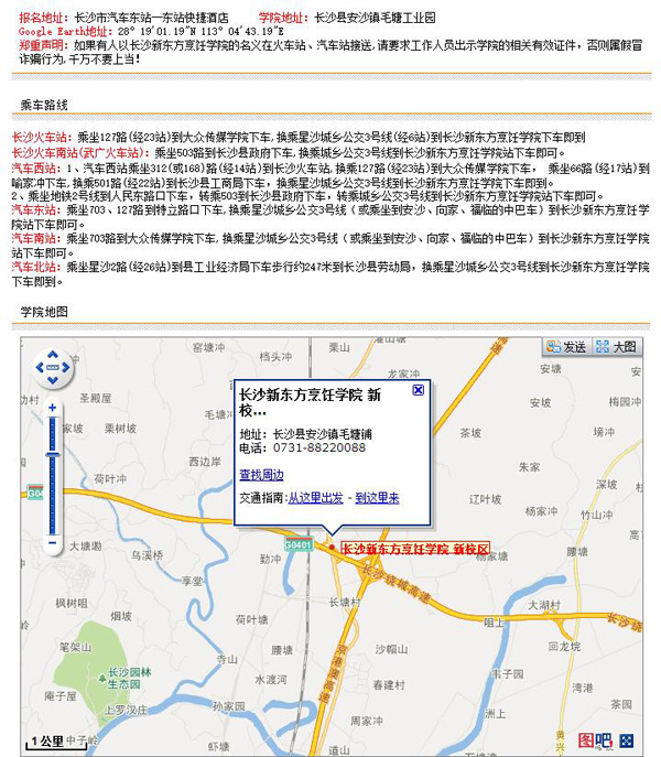 长沙新东方烹饪学院校区地址:长沙市经济开发区毛塘工业园