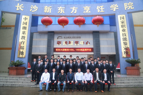 2016年4月,长沙新东方烹饪学院大厨精英1404班、1405班的学生们毕业了。毕业典礼于4月25日在学院三楼会议室里举行。曾经的班主任张老师担任主持工作。国歌奏响,全体师生起立,两个班级的毕业典礼正式开始了。